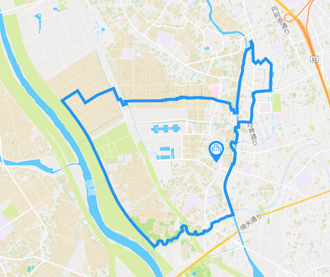 大久保小学校の学区は、地図で見ると以下になります。