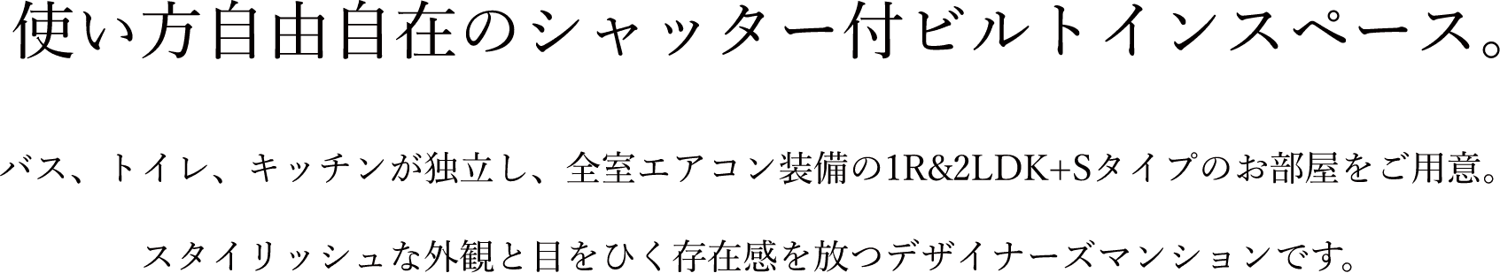 | 間取 | 1R+ロフト・2LDK+S+ロフト |