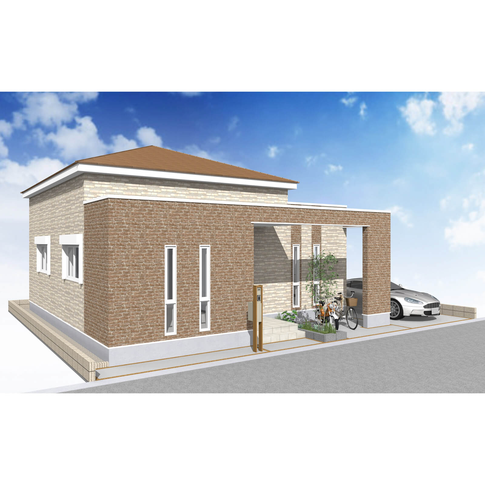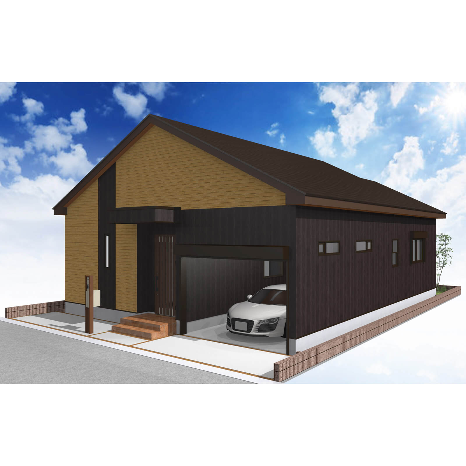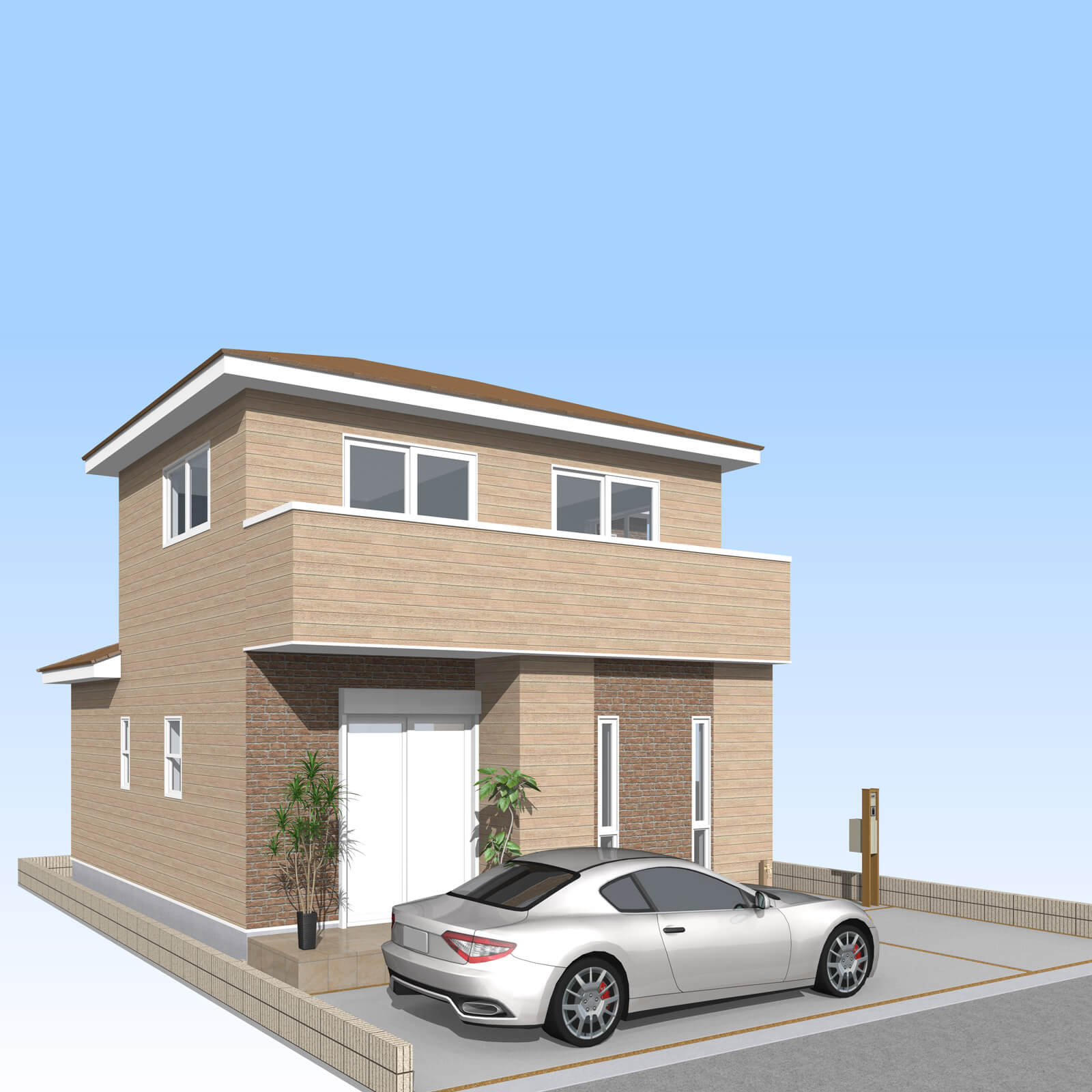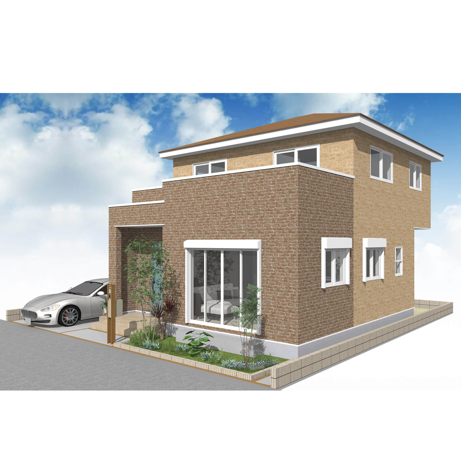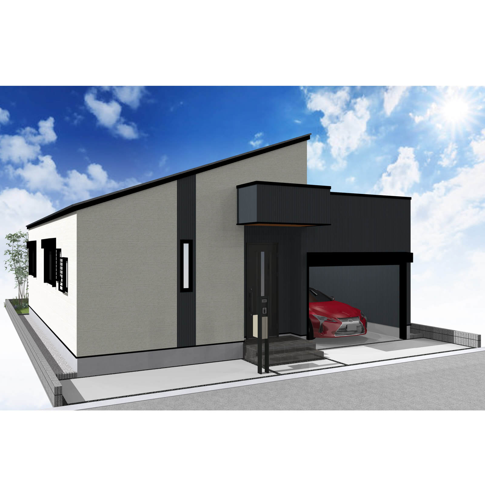 カースペースは北側に1台駐車が可能。南に植栽がレイアウトできる庭を設けました。