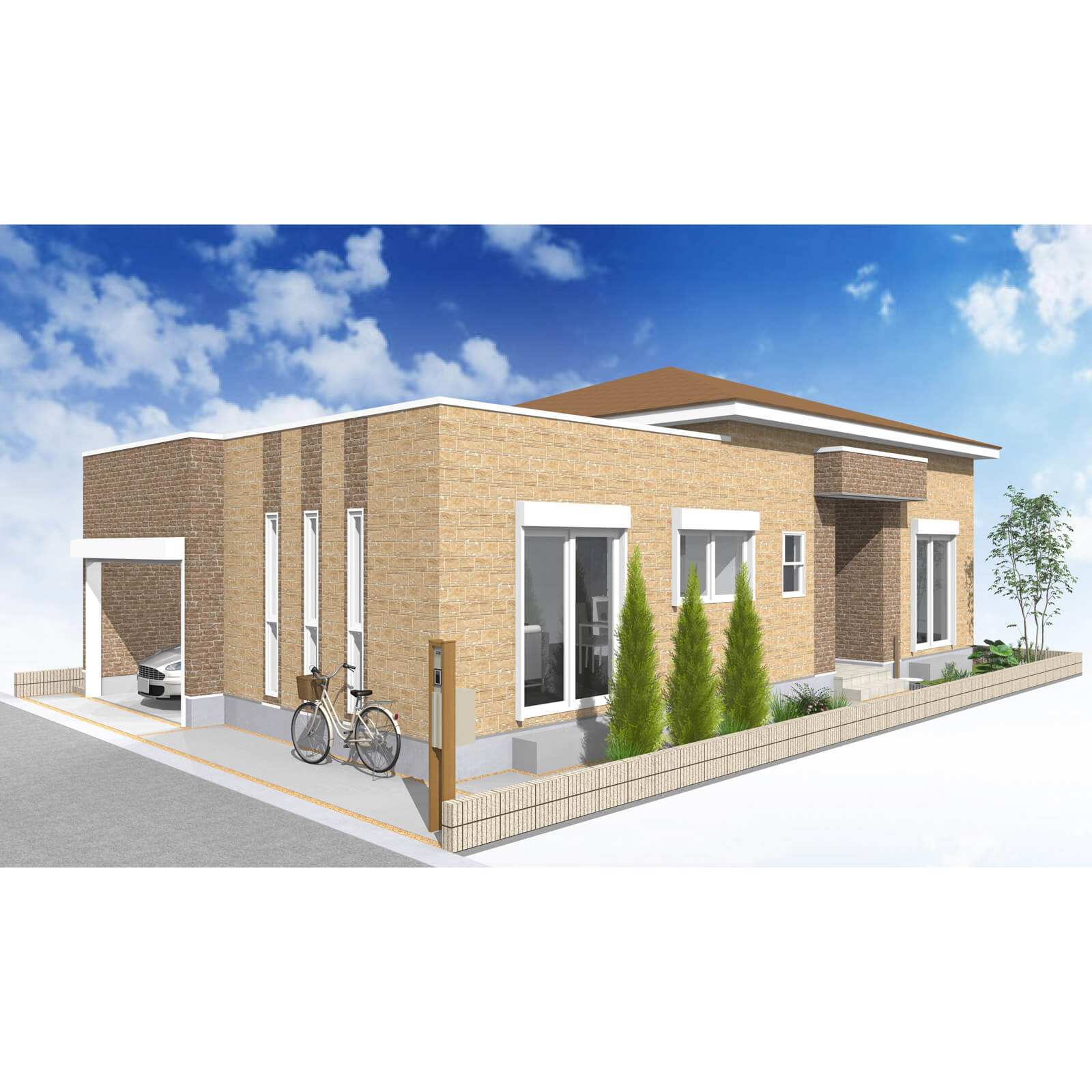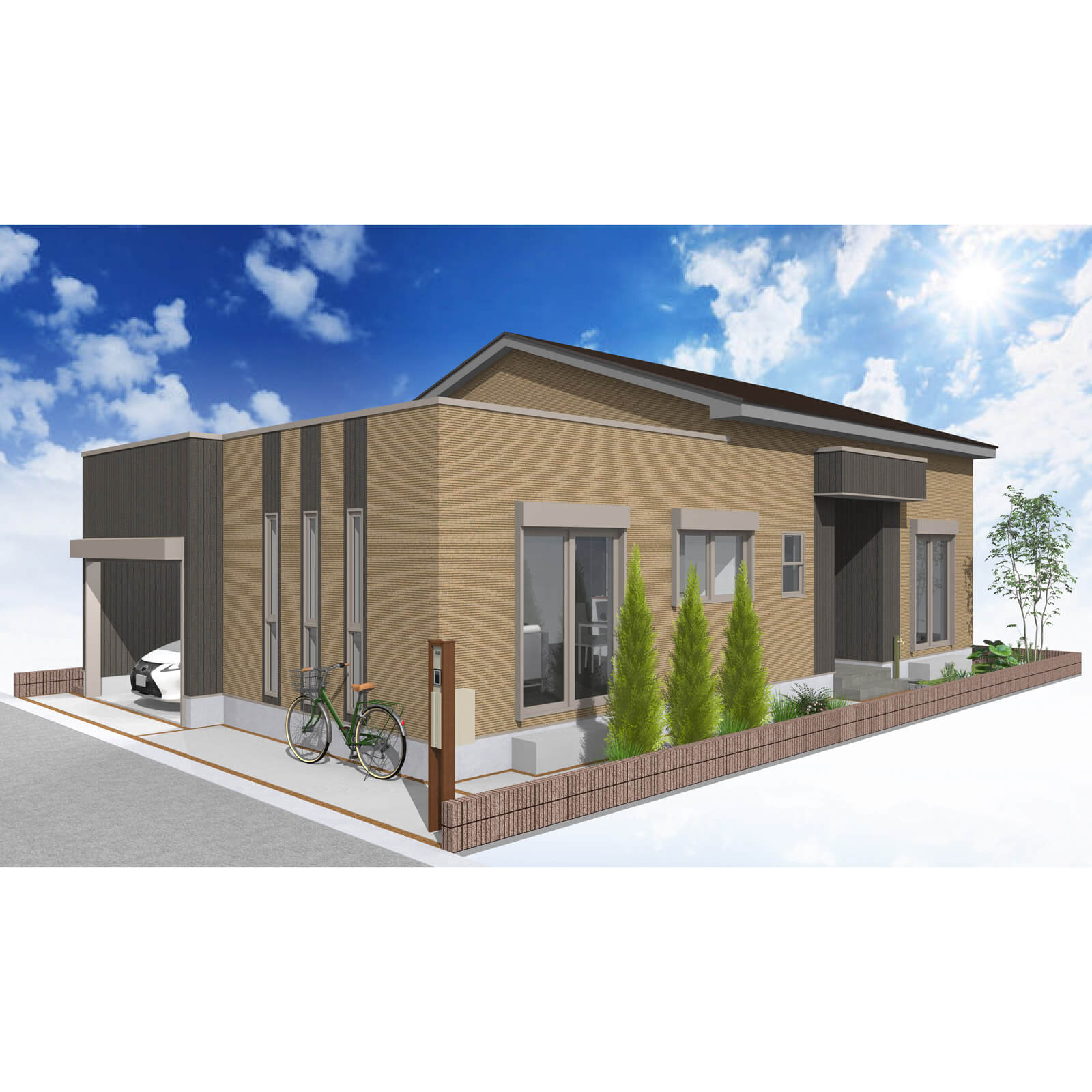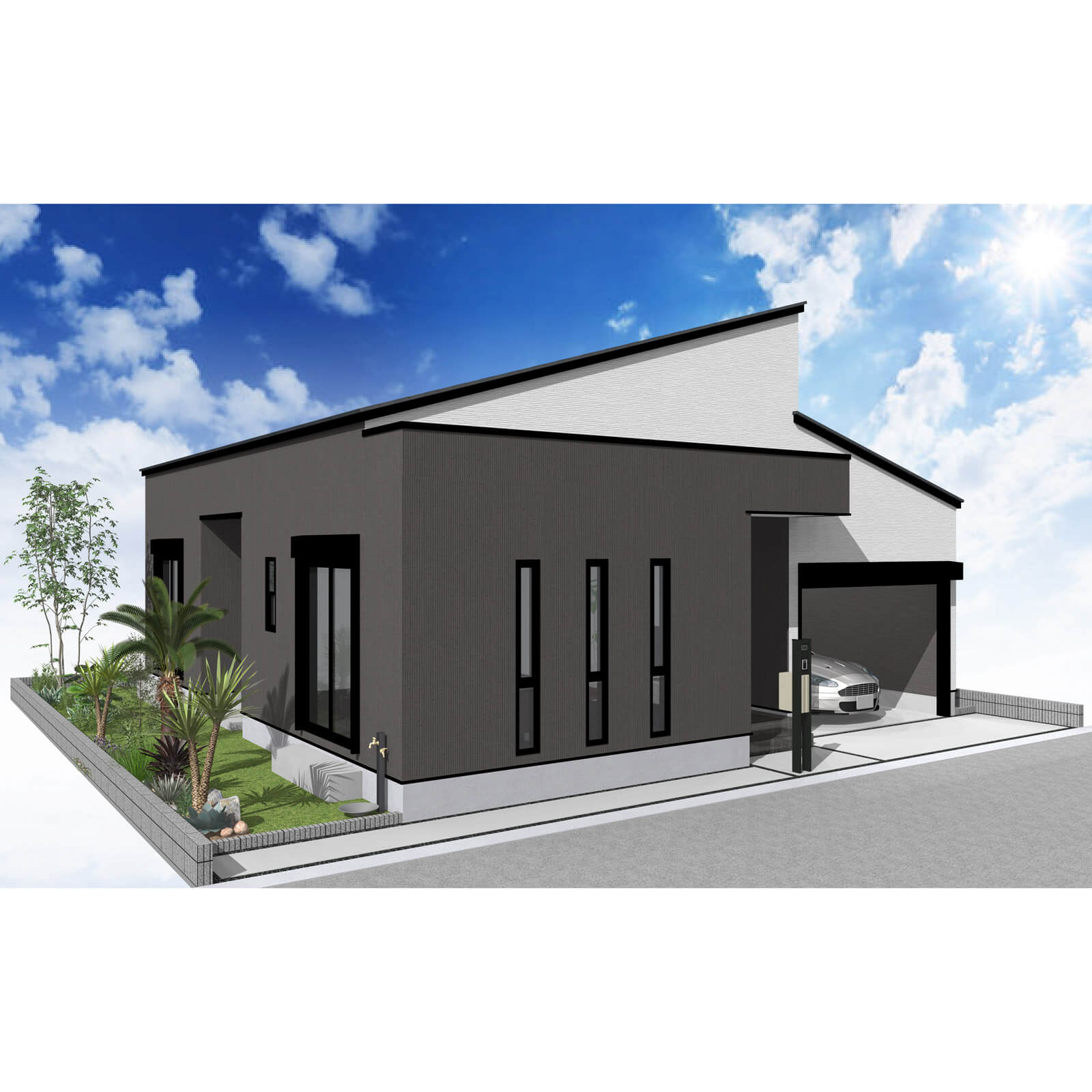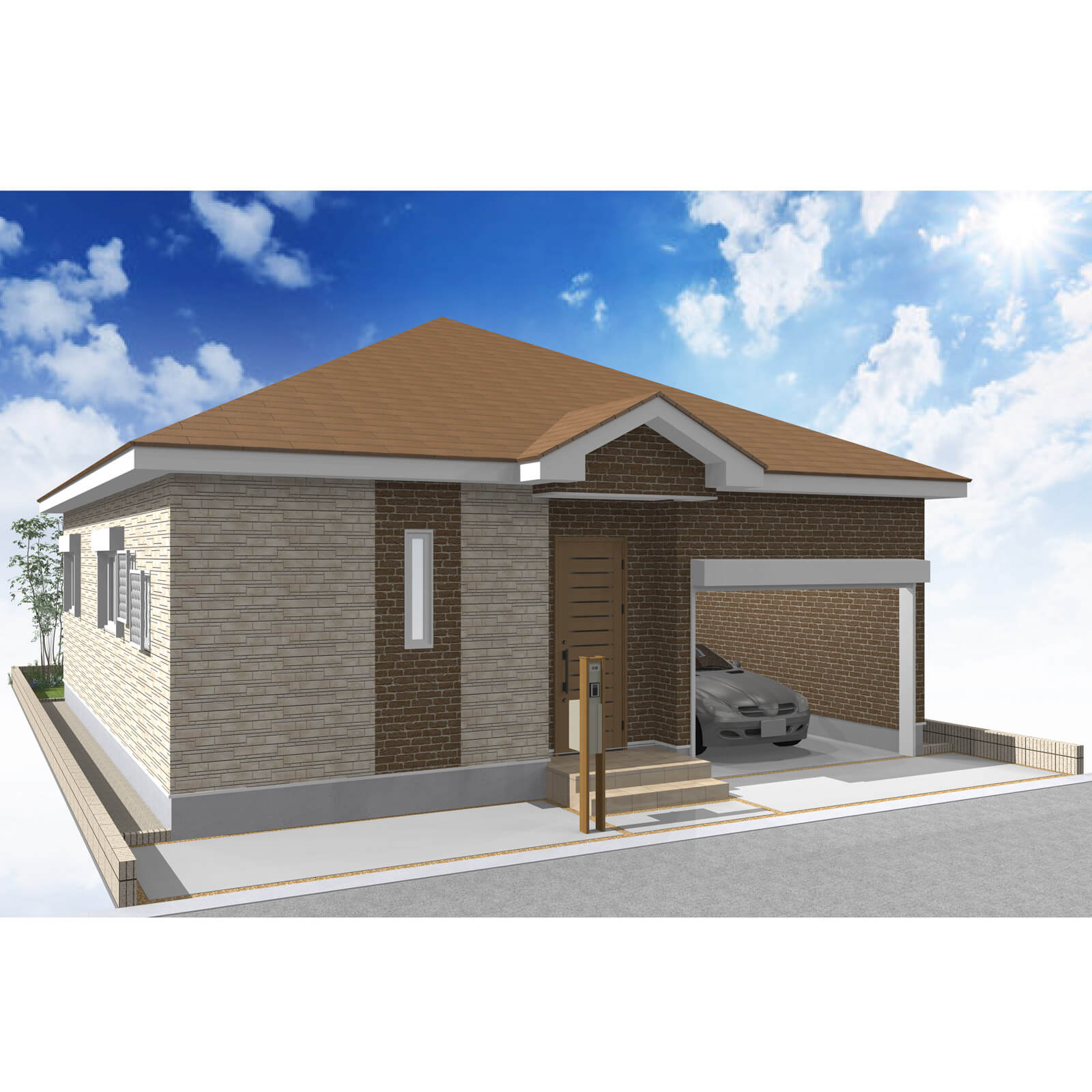 カースペースは北側に1台駐車が可能。南に植栽がレイアウトできる庭を設けました。