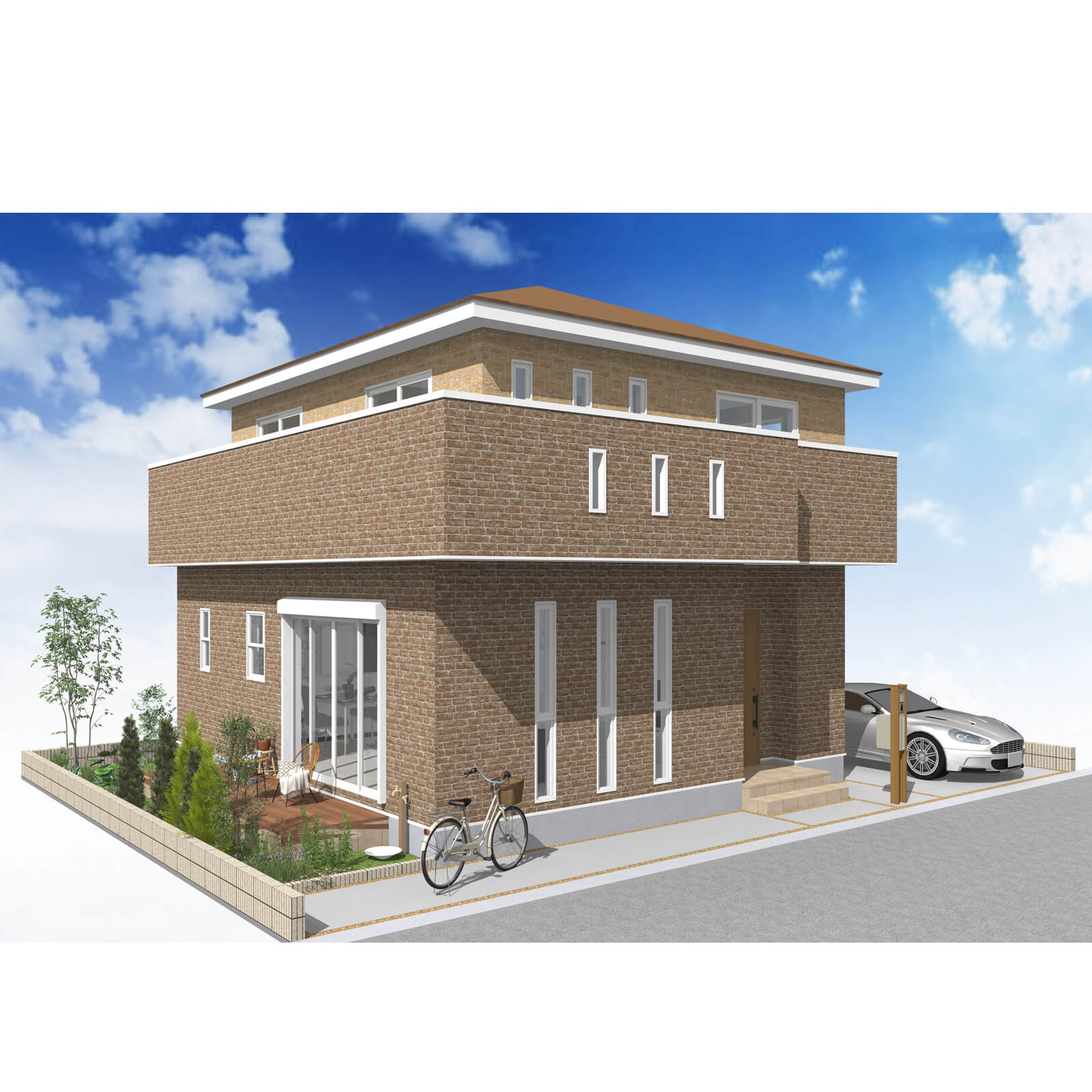 2階は3寝室を配置し、南側にワイドバルコニーを設置。プライバシーの確保に配慮し、壁面を高くしているため、家族で楽しむプライベートな利用が可能です。