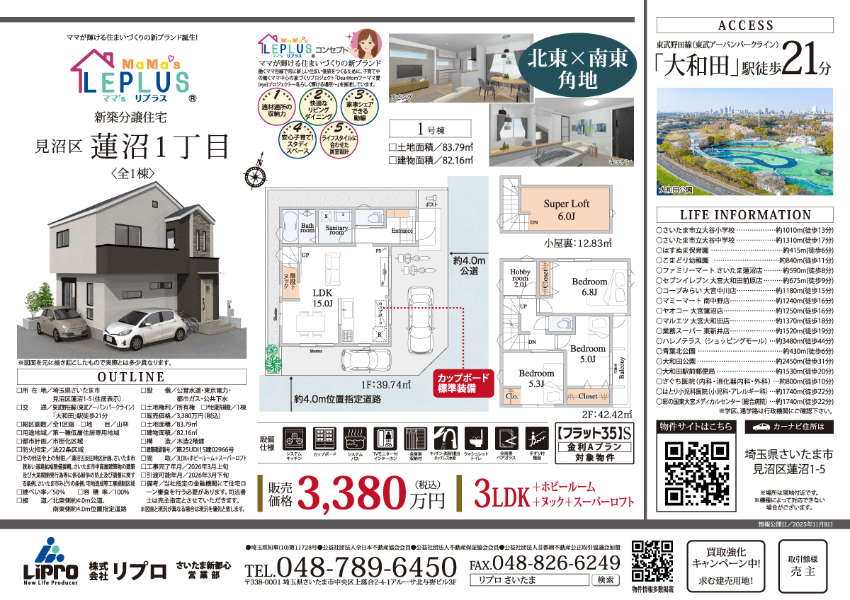 新築分譲住宅 ママ’sリプラス見沼区蓮沼1丁目 物件概要