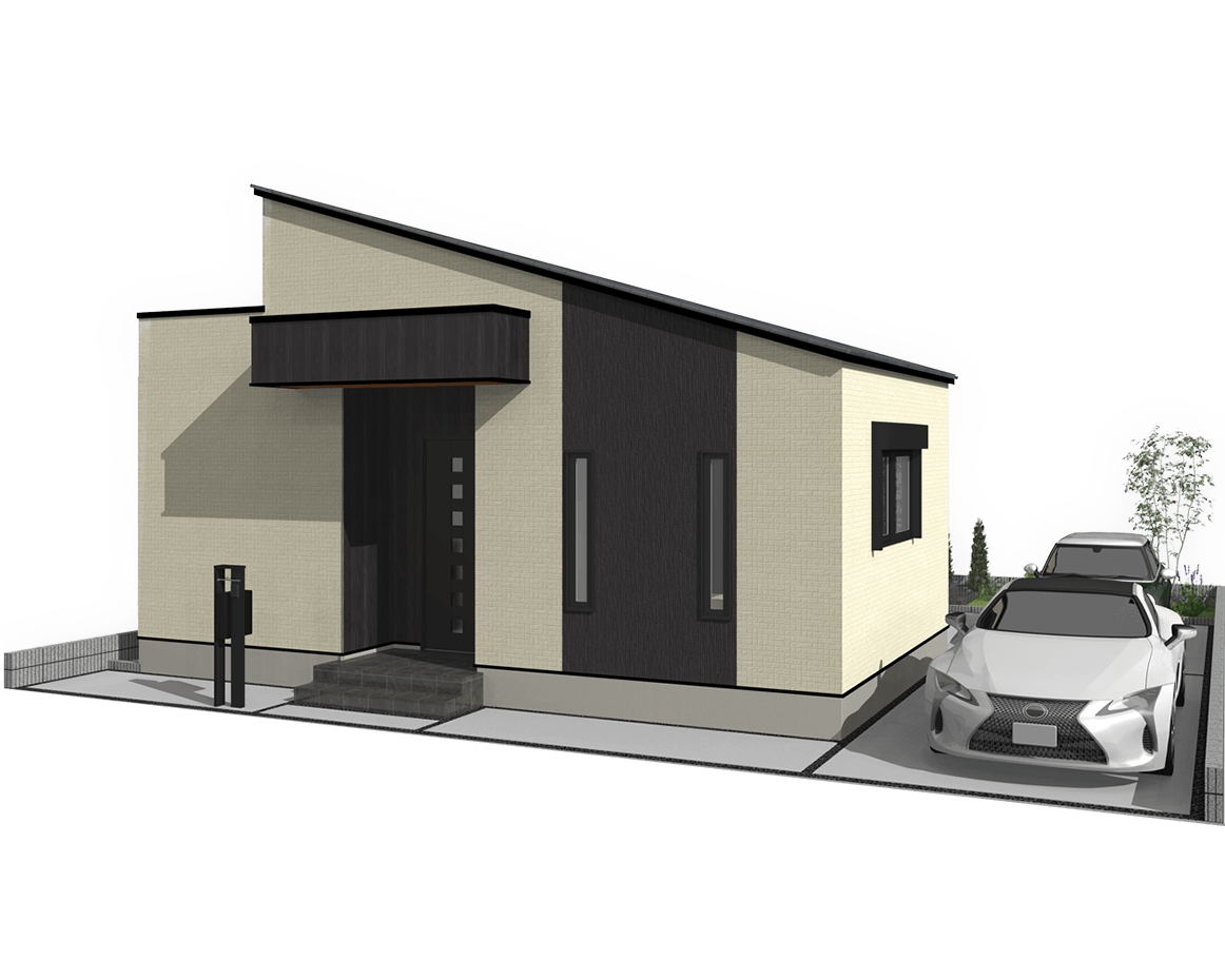 間取り:2LDK+Built-in garage 玄関方位:東側 車庫面積:23.18㎡ 建物本体(外構込)価格 2,100万円[税込]