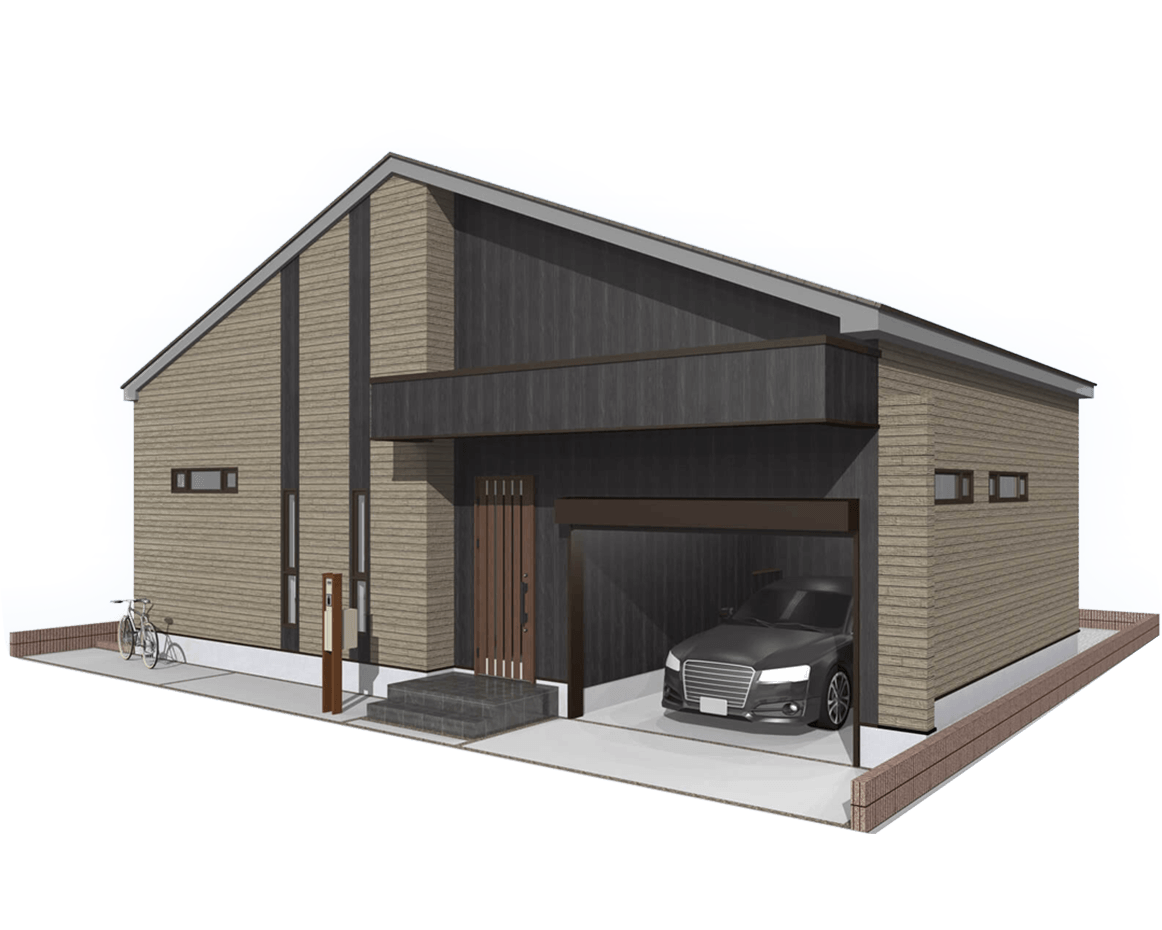 間取り:2LDK+Built-in garage 玄関方位:南側 車庫面積:23.18㎡ 建物本体(外構込)価格 2,100万円[税込]